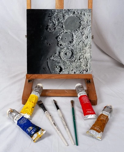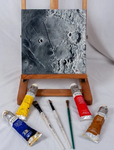 Original New Ptolemaeus crater space art Oil painting 12" x 12" canvas Board.