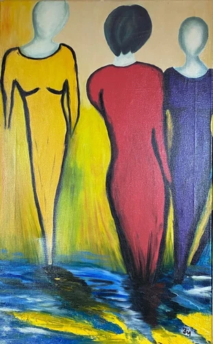 Oil Painting "THE THREE GRACES" Picture Drawing Painting Original Decoration Stretcher