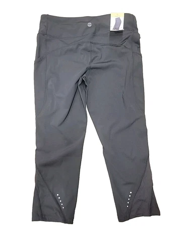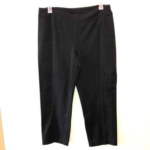 Zenergy by Chicos Womens Large 2 Black Capri Activewear Pants Zipper Pocket