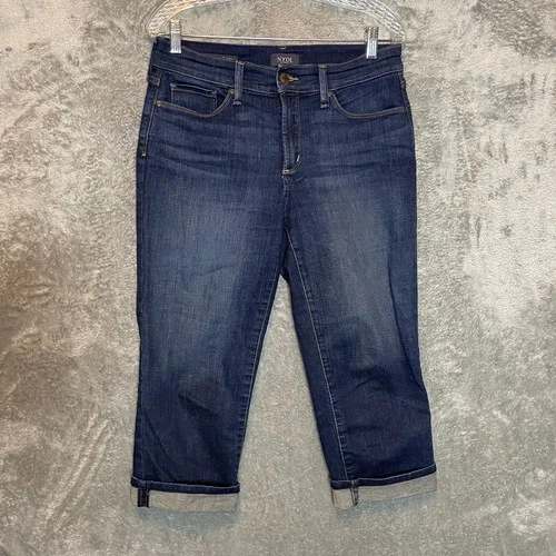 NYDJ Women Size 8 Dark Wash Stretch Lift Tuck Marilyn Straight Cuffed Capri Jean
