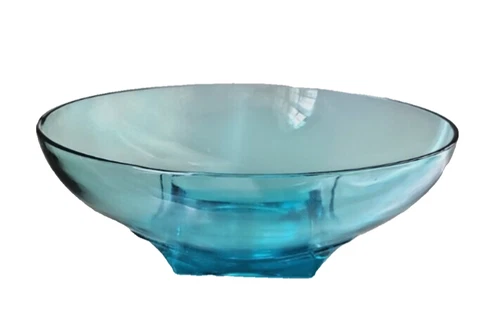 11" Vintage Hazel Atlas Capri Azure aqua Blue glass Serving Bowl footed dish