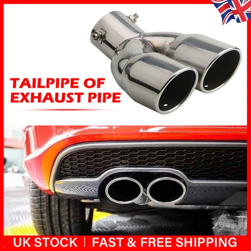 Universal Car Dual Exhaust Tip Tail Pipe Polished Stainless Steel Silver 2.5"