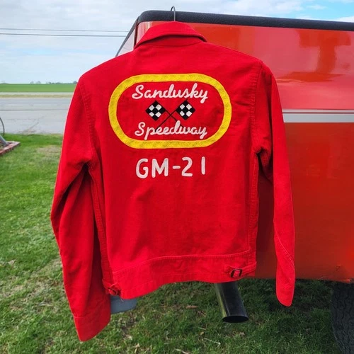 Vintage 1960s Sandusky Speedway Chain Stitch Red Corduroy Jacket Race Car # IDd