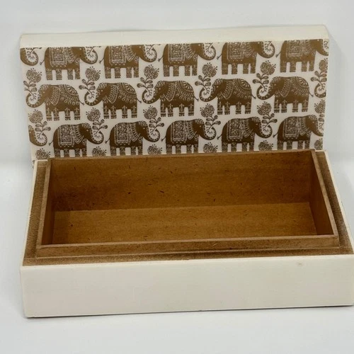 Decorative Storage Box Elephant Pattern White Gold Lid Organizer/ cigar box
