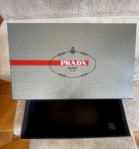Prada Milano Silver Red Stripe Empty Shoe Box Approximately 8 x 13.5 x 5”