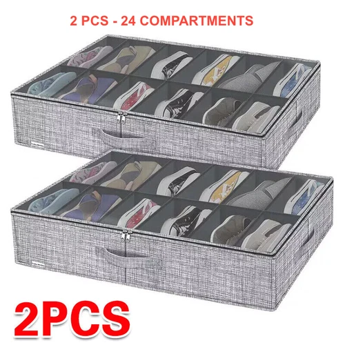 Under Bed Shoe Storage Organiser For 24 Pairs Foldable Box Set Of 2 Containers