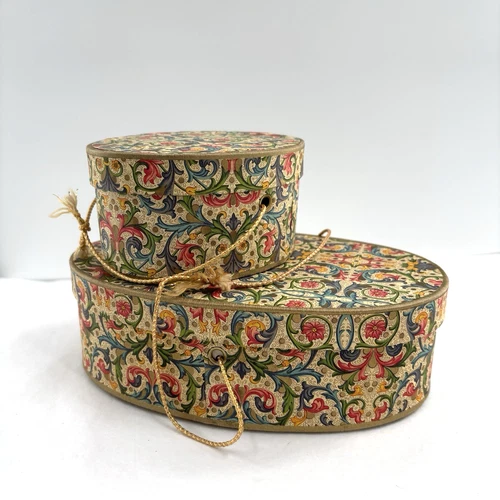 Set of 2 Oval Nesting Decorative Boxes with Lids Floral Storage Gift