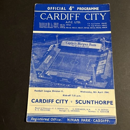 (S) Division 2 Cardiff City v Scunthorpe 8.4.1964