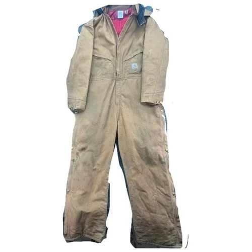 Carhartt Men's Tan Insulated Work Bib Overalls Full Zip Hooded Size 48 Regular