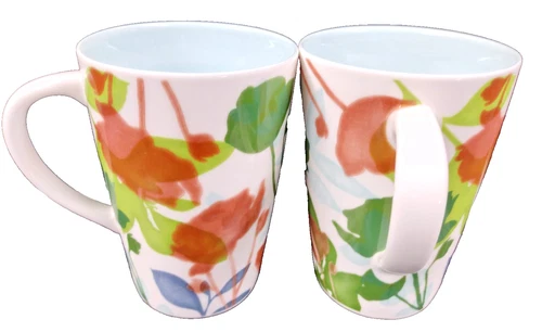 Pair of 2009 STARBUCKS WATER COLOR FLORAL GARDEN 14oz MUGS FLORAL DECO MUG.B398