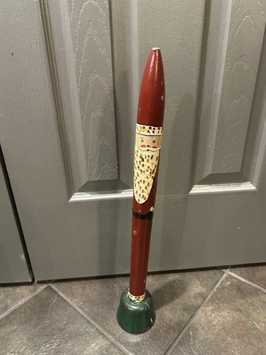 Vintage Pencil Santa Figure Folk Art Christmas 9 3/4 Carved Wood Hand Painted
