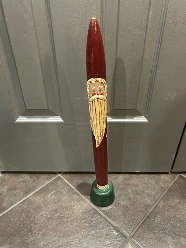 Hand Carved Vintage Folk Art Santa Claus 20” Tall Pencil Figure Christmas