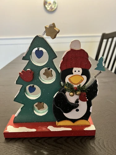 Vintage Penguin Christmas Tree Wood Carved Figure