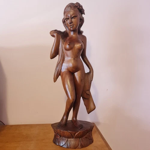 Vintage Bali Balinese Wooden Carving Exotic Figure Seductive Nude Woman 20"