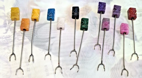 Vtg Set of 12 Hand Carved Tiki Quartz Head Cocktail Fork Picks