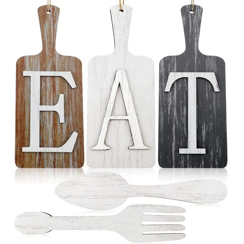 Cutting Board Eat Sign Set 15 x 6 Inch Hanging Wood Eat Signs Fork and Spoon ...