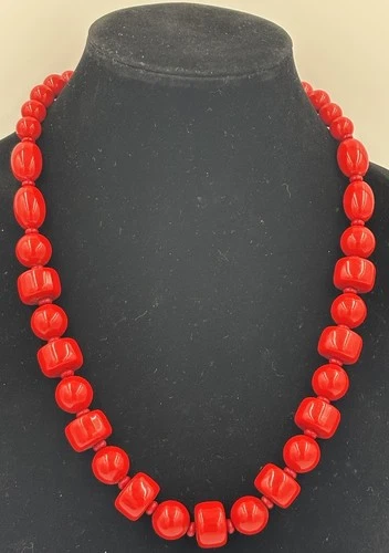 Vintage Red Bead Necklace Chunky Casein Style Imitation Coral Mid Century
