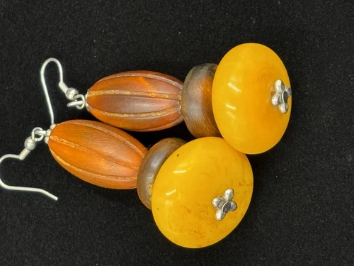 Vintage Casein Egg Yolk Earrings Chunky Marbled Butterscotch Tribal Boho Dangle
