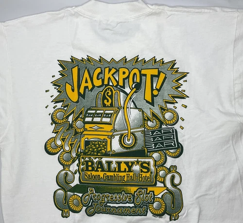 Vintage Ballys Saloon T-Shirt Gambling Hall Hotel Jackpot 1997 Tee Retro L RARE