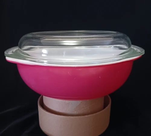 PYREX 2 Qt Flamingo Pink Round Casserole Dish #024 w/domed glass Lid 684-C