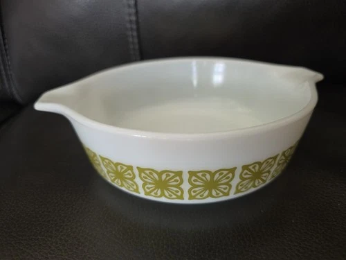 Vintage Pyrex Verde Square Green Flower 471 Round Casserole Dish 1 Pt No Lid