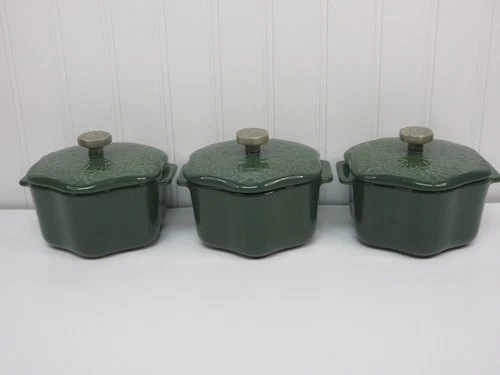 Pioneer Woman Snowflake Cocotte with Lid Set Stoneware Green Christmas Holidays