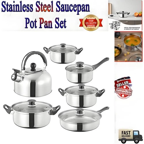 12pcs Stainless Steel Cookware Saucepan, Casserole & Fry Pan Set with Glass Lid
