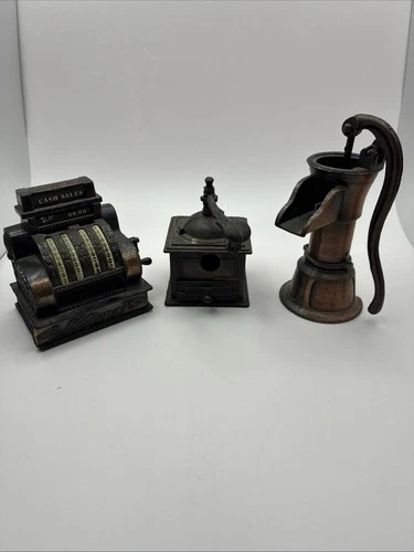 Vtg Style Pencil Sharpener Set Of 3 Cash Register Coffee Grinder Water Pump