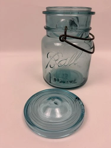 Ball Ideal EZ Seal Blue Pint Size #8 Mold Jar With Glass Lid Metal Wire Bail