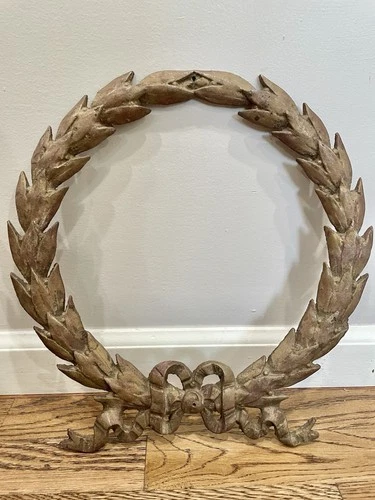Fabulous Antique Cast Iron Laurel Wreath Wall Decor Bow Antique Victorian