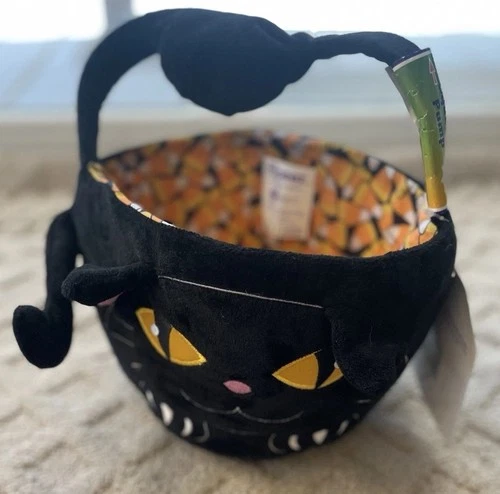 Trick Treat Basket Black Cat Halloween Flipeez Candy Corn Pump Handle Tail Wags