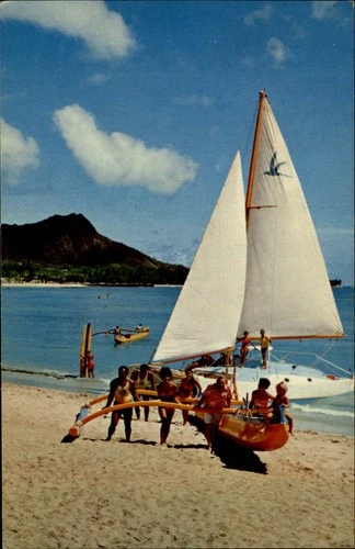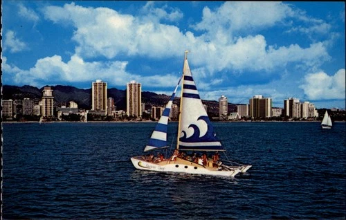 Catamaran Waikiki Beach Hawaii vintage postcard a279