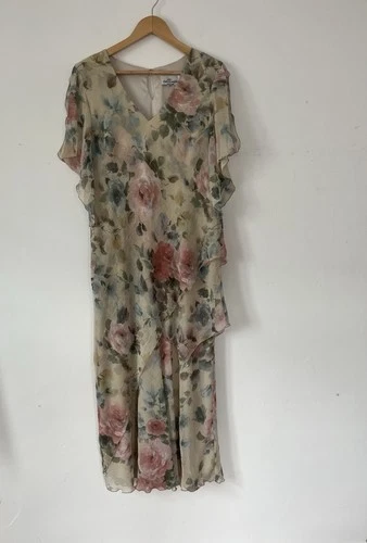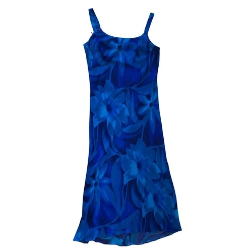 Cattiva New York Vintage 100% Silk Blue Floral Midi Slip Dress Womens 14
