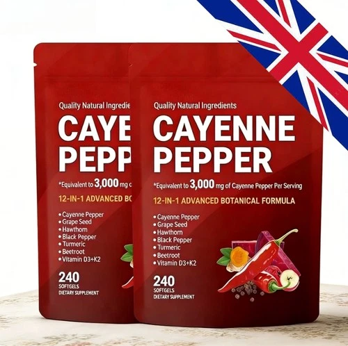 Cayenne Pepper Capsules Vitamin D3 K2 1-2 Pack Heart Vascular Support UK
