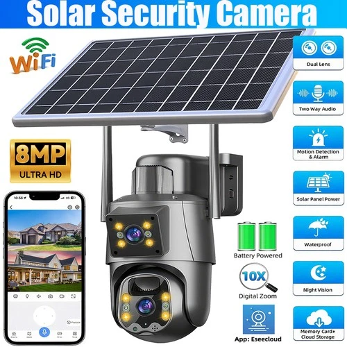 8MP 360° PTZ Solar WiFi Security Camera Outdoor Waterproof CCTV IP Camera