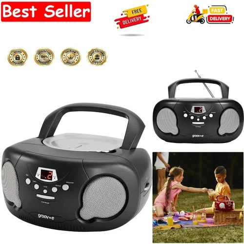 Groov-e Boombox - Portable CD Player with Bluetooth, Radio, 3.5mm Aux Port, ...