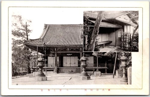 Japan, Traditional Temple, Tiled Roof and Stone Lanterns, RPPC Photo, Postcard