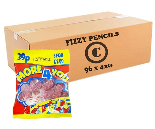 More 4 You 3 for £1 Fizzy Pencils - Box C of 96x42g Jelly Sweets