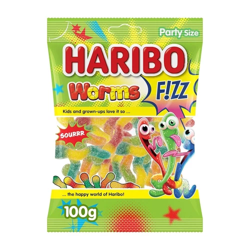Haribo Sour Worms Halal Gummies - Box 30x80g Chewy Fruicy Sweets
