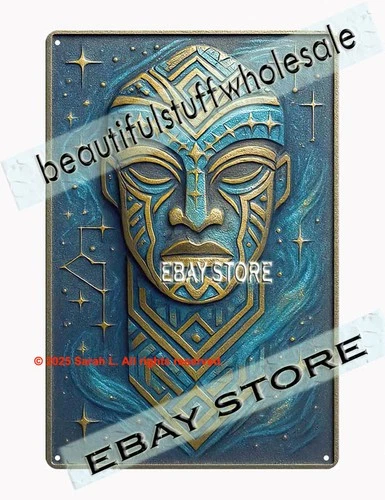 Celestial tribal mask metal sign mystical symbolism art spiritual face decor
