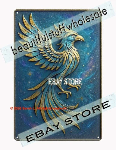 Celestial phoenix metal sign mystical rebirth art fire bird decor