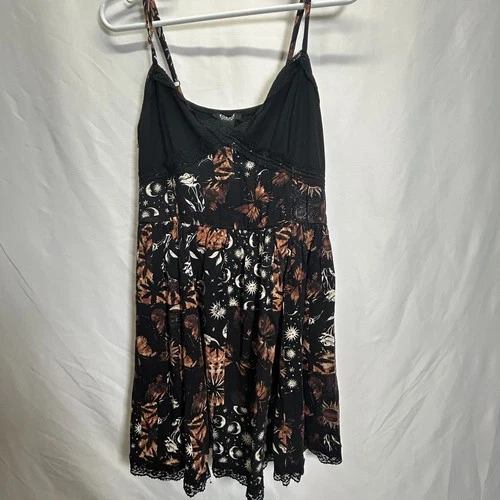 Cosmic Aura Hot Topic Dress Celestial Moon Stars Sun Lace Black 90s Y2K Size M