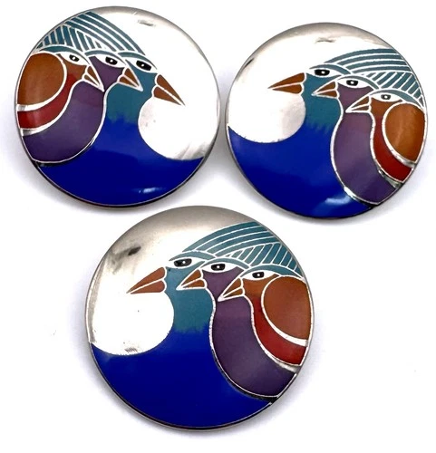 Laurel Burch "Celestial Birds" Earrings & Brooch, 1980s Vintage Jewelry