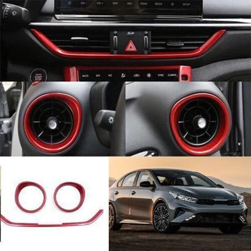 For Kia K3 Forte 2019-2023 L&R Air Outlet Vent Trim Center Console Gloss Red 3PC