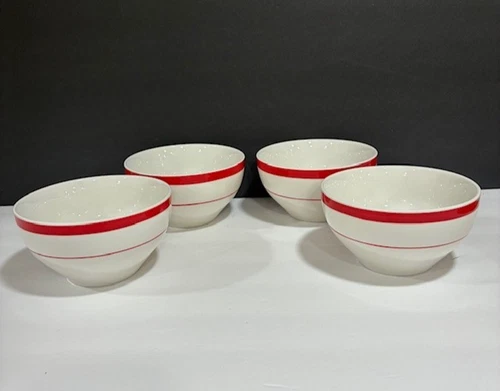 American Bistro Diner-Ware White with Red Band Cereal Soup Bowls Set of 4