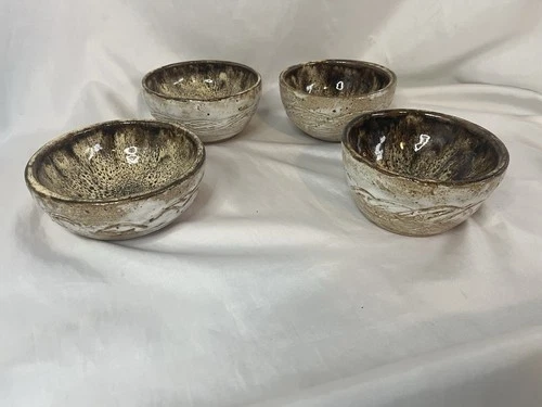 ART POTTERY lot of 4 stoneware cereal bowls artist signed by Connolly. 1983.