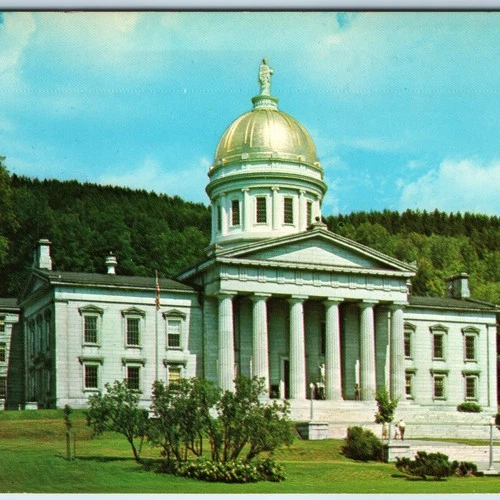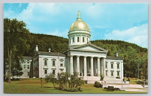 Vermont State Capitol Montpelier VT Postcard Ceres Goddess Gold Dome