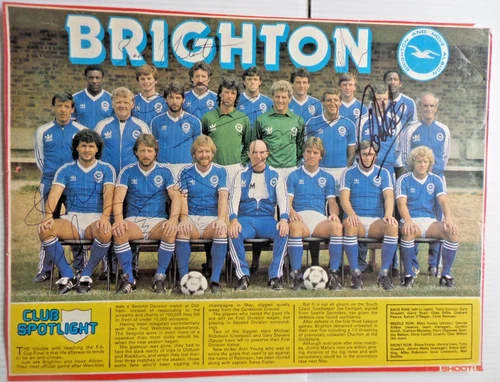 BRIGHTON AND HOVE ALBION AUTOGRAPHED MAGAZINE PICTURE, SIGNED BY 11, SEE LIST.