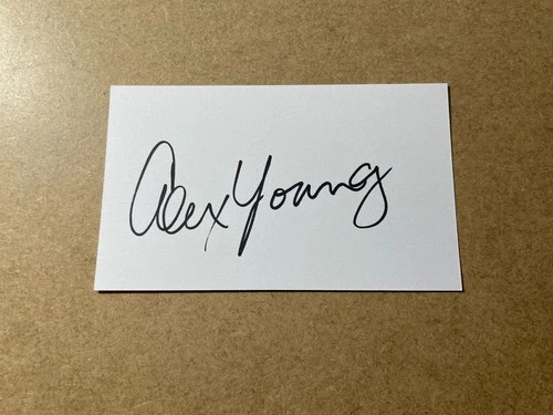 ALEX YOUNG EVERTON FOOTBALL LEGEND SIGNED CARD HEARTS SCOTLAND