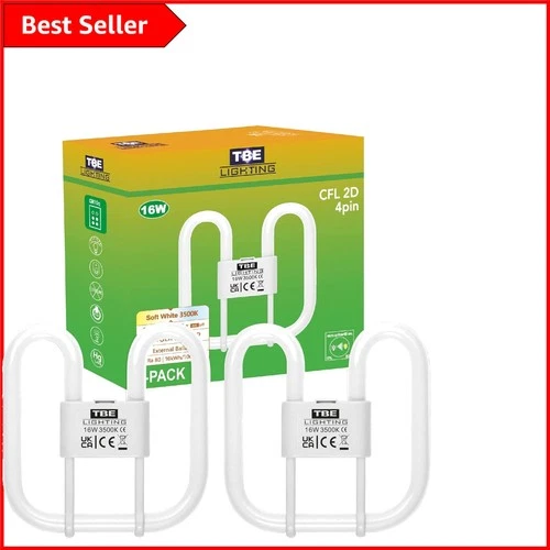 Eco-Friendly 16W 4-PIN CFL Bulbs - 8000 Hour Lifespan, Soft White 3500K - 2-Pack